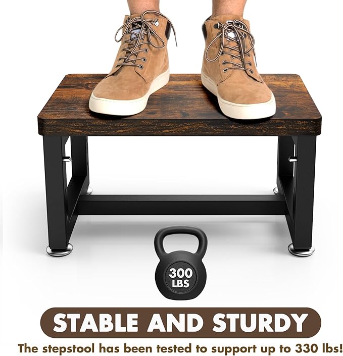 - SAFE AND ERGONOMIC- Non-slip rubber feet protect all types of floors from scratches and can be used on uneven surfaces. Wide steps provide plenty of space to stand on for both comfort and stability.