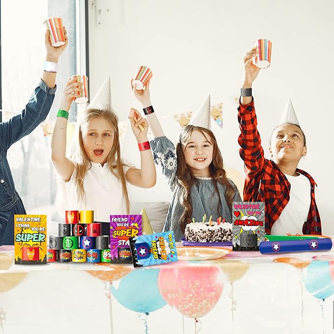 - [Wide Applications] Suitable for Valentine's Day party, superhero theme birthday party, classroom gift exchange, comic hero fan party, family gathering celebration, birthday theme party, etc. Also can be used as prizes, gifts for school classes, etc.