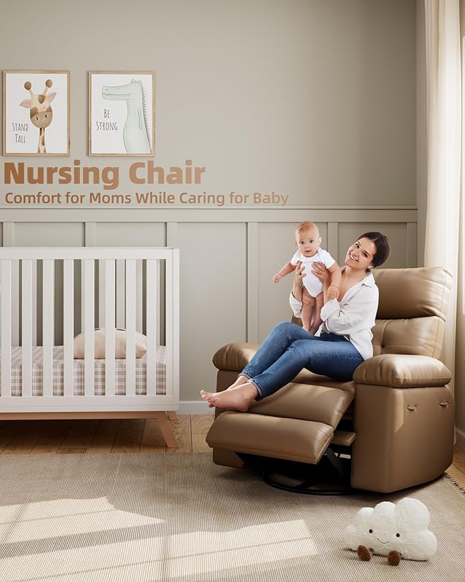Electric Recliner Chair - 360° Rocker Swivel Recliner with Heat and Massage, PU Leather Large Power Recliner for Adults, Comfortable Lazy Chair with 1.5X Sponge Filling for Living Room, Tan