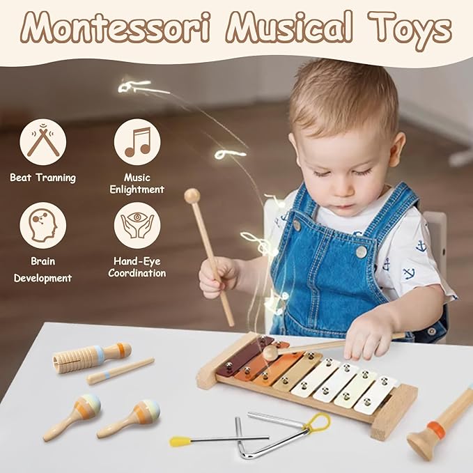 - [Music Enlightenment Toys]-Montessori toys for toddler as an early education montessori toys it dedicated to help children develop sensitivity to music and perception of rhythm. Musical instruments also develop a sense of rhythm and musical skills and help children enlighten music.