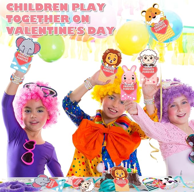 - Valentines Cards:This set of 24pcs Valentine's Day cards for kids showcases six adorable animals designs, including elephant, rabbit, sheep, panda, tiger, lion, spaces to fill in the recipient and sender on the back.