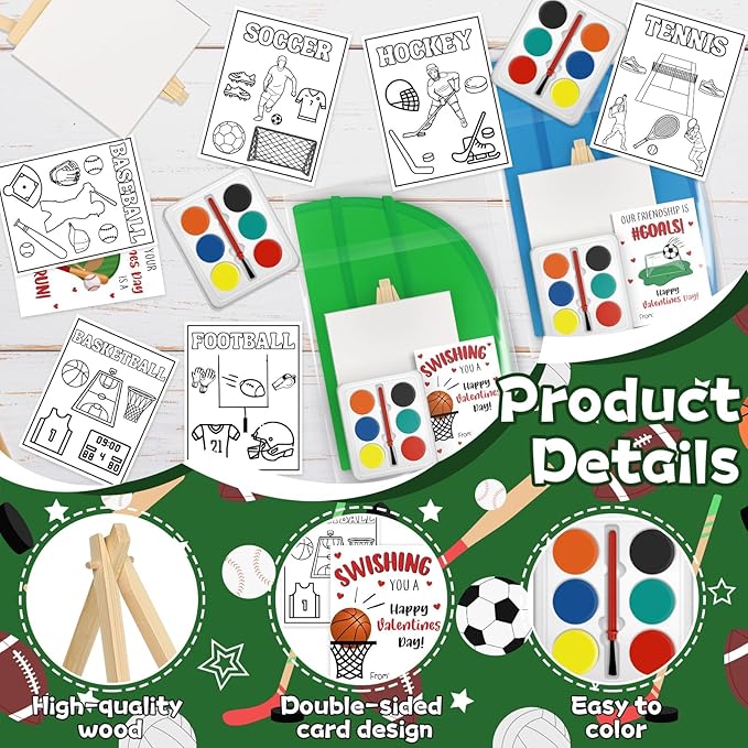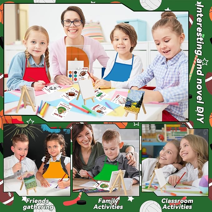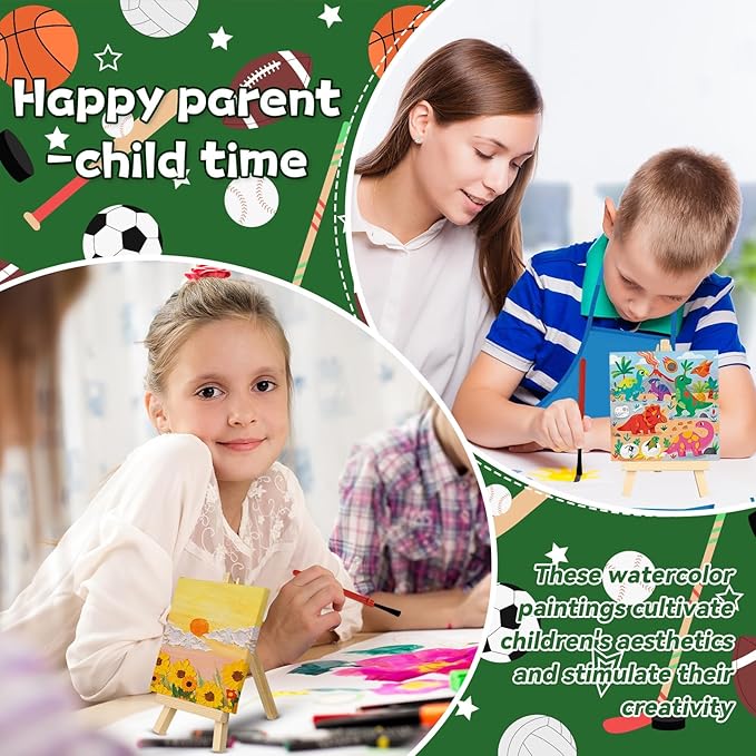 - All-Inclusive Paint Party Supplies: you will get 24 sport cards, 24 small canvases, 24 sturdy small easels, 24 watercolor paint sets, 24 multi-colored aprons tailored for children, and 24 gift bags. You can put them in the bags and give them to beginner artists