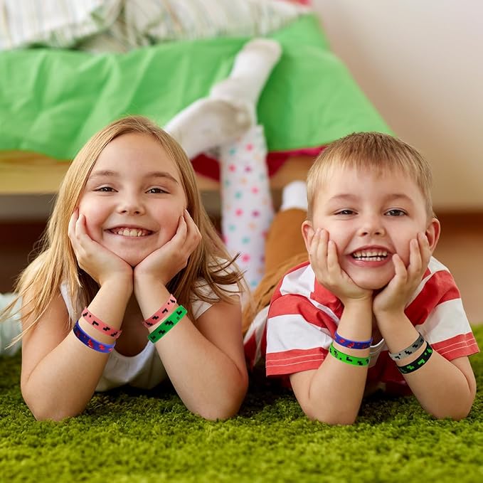 Pixel Miner Theme Party Favors, 24 Pieces Silicone Bracelets Wristband Small Size,Birthday Party Supplies,Valentines Day Gifts for Kids Classroom