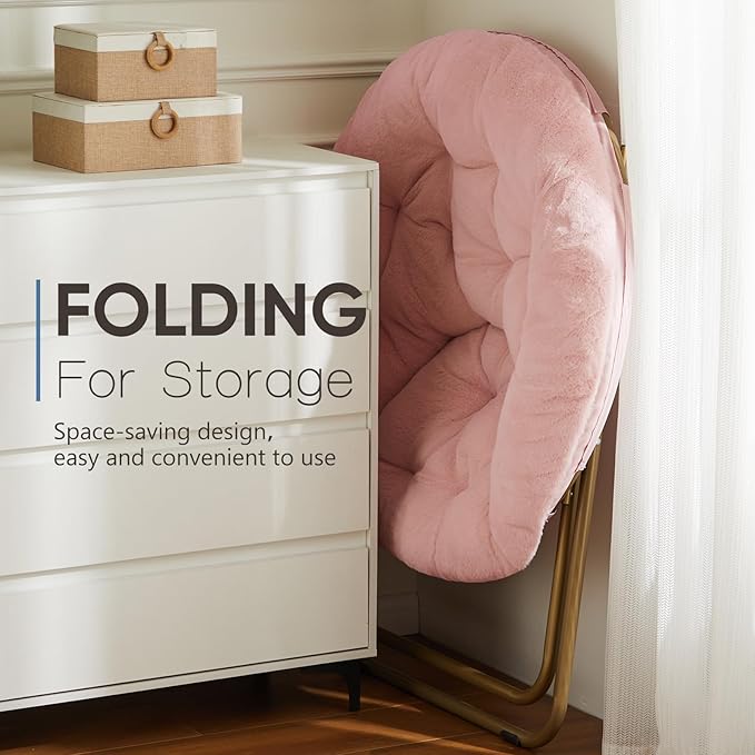 DUMOS Comfy Saucer Chairs, Faux Fur Lounge Bedroom Living Room Flexible Folding Seating for Kids Adults Soft Padded Metal Frame Modern for Home Office Pink