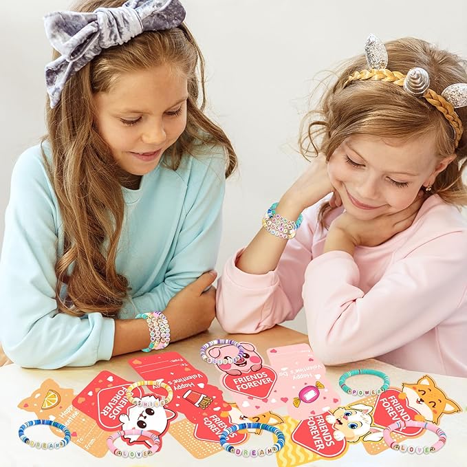 - Quality and safety: Children's Valentine cards are beautifully printed with clear and bright patterns, and beaded friendship bracelets are made of high-quality flexible rope and seed beads, lightweight and durable, and can be comfortably worn on most children's wrists.