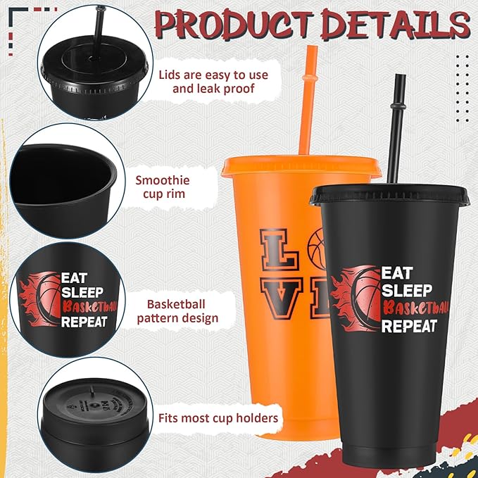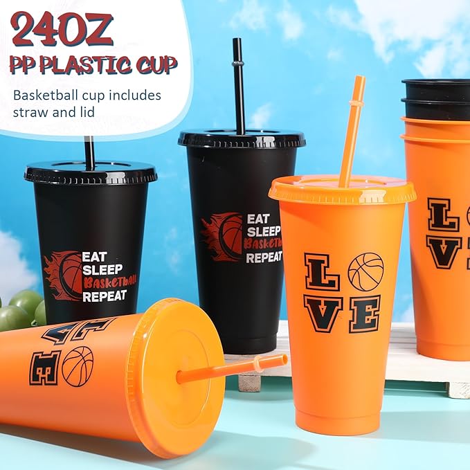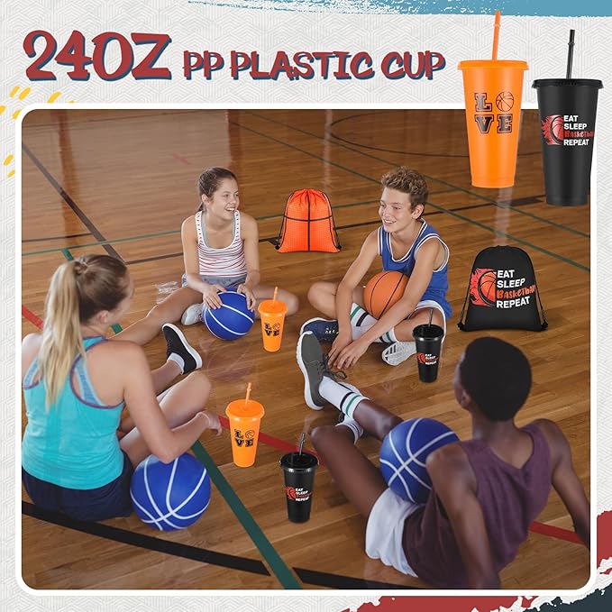 - Package List: we will provide you with 12 pieces of basketball cups with lids and straws, 12 pieces of basketball bags, 12 pieces of basketball hair scrunchies and 12 pieces of basketball bracelets, enough to meet your daily use and replacement needs