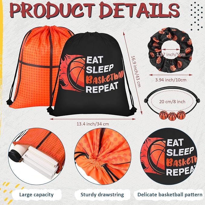 - Quality Material: the drawstring bag is made of polyester material, the basketball cup is made of PP material for reliability and safety, the bracelet is made of wax cotton ropes and plastic beads and the basketball hair tie is made of quality polyester