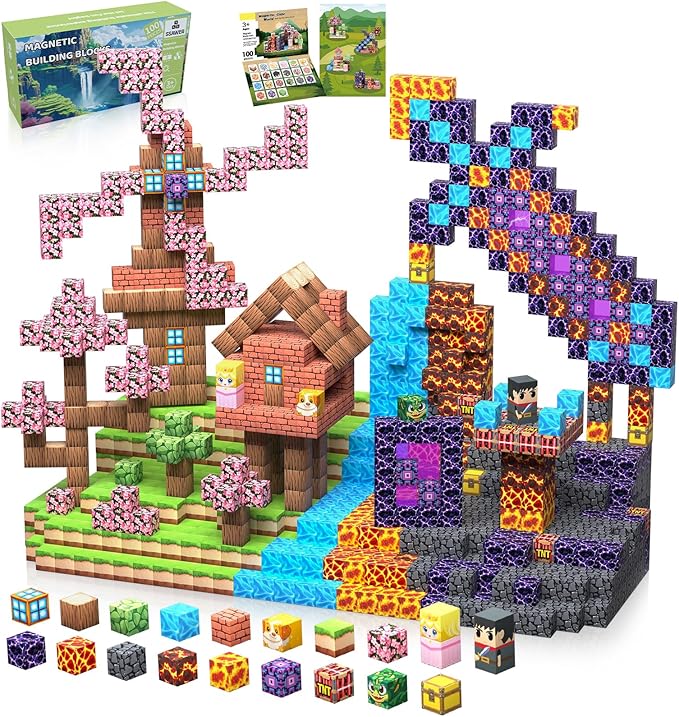 Magnetic Blocks, 3D Building Blocks Set for Kids Ages 3 4 5 6 7 8 9 10, 100 PCS Magnetic Cube, STEM Montessori Construction Toys for Easter Birthday Gifts (CX-001)