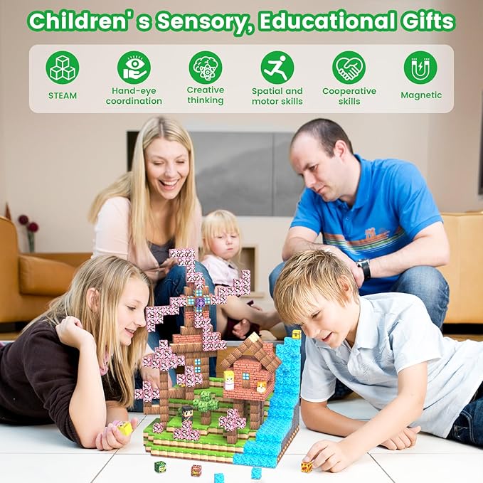 - đ°ăMontessori and Sensory ToysăUnlike other solid color cubes, these cubes provide a variety of patterns to create a more vivid and immersive play experience. These magnetic building blocks are rich in patterns, perfect for sensory play, and stimulate children's creativity. They are perfect for hours of interactive play and can be used toys to encourage children to explore structures and develop skills such as problem solving, spatial awareness, and fine motor skills.