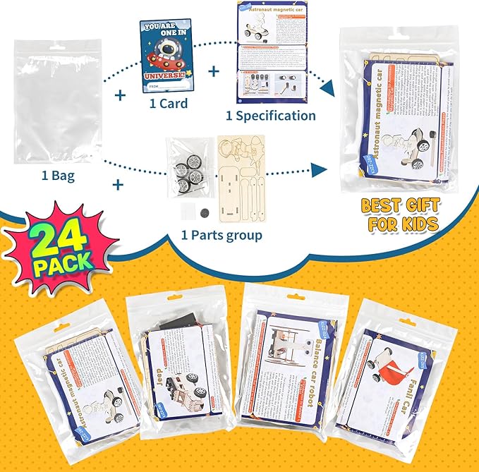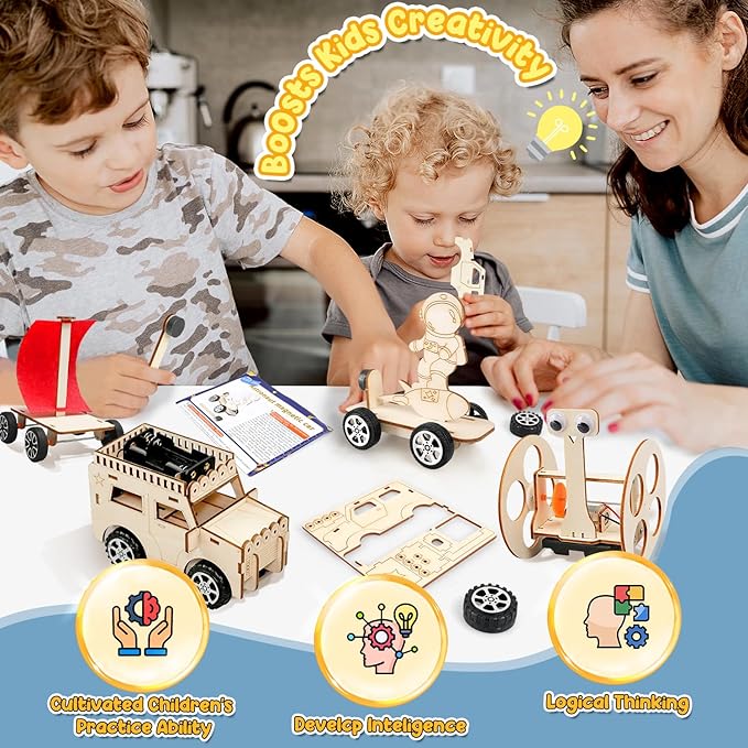 - 【Educational and Fun】 Each kit includes carefully crafted wooden pieces and easy-to-follow instructions that children can assemble into exciting models. These activities promote creativity, hand-eye coordination, problem-solving, and critical thinking skills—all while keeping kids engaged. Perfect for fostering a love of science, technology, engineering, and math (STEM) in a playful and hands-on way.