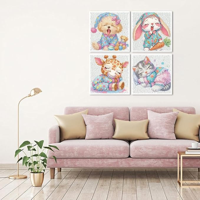 FQOVKYN 4 Packs Cute Animals Diamond Art Kits for Kids, DIY Cartoon Small Diamond Painting Kits for Kids Age 6-12, Diamond Art and Crafts Kits for Girls Boys Birthday Gift(6 * 6inch)