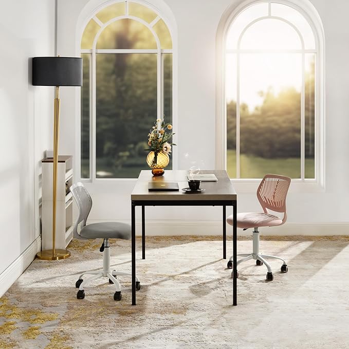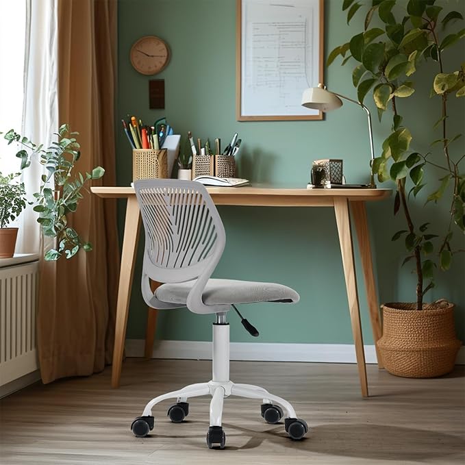 Homy Casa Armless Home Office Desk Chair, Colorful Task Chair with Soft Mesh Padded Cushion, Height Adjustable Swivel Study Computer Chair for for Girls Boys Teens (CO-Grey, 1PC)