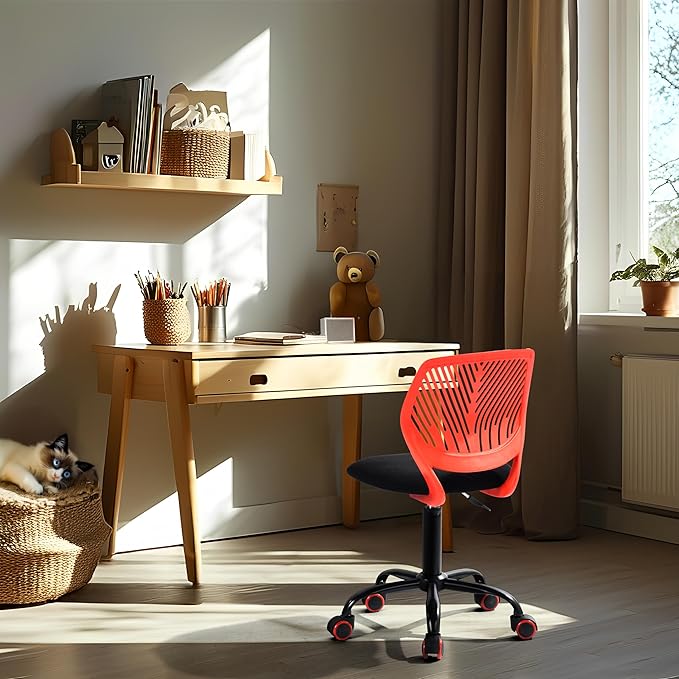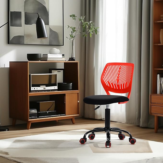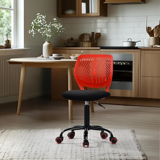 Homy Casa Armless Home Office Desk Chair, Colorful Task Chair with Soft Mesh Padded Cushion, Height Adjustable Swivel Study Computer Chair for for Girls Boys Teens (CO-Black, 1PC)