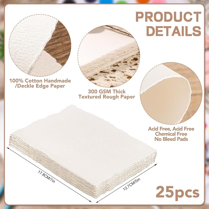 - 【What You Will Receive】You will receive 25 sheets of handmade textured paper measuring 5 x 7 inches, paper weight 140lb/300gsm, ivory white to suit your various painting needs and to share with your children, friends and family.