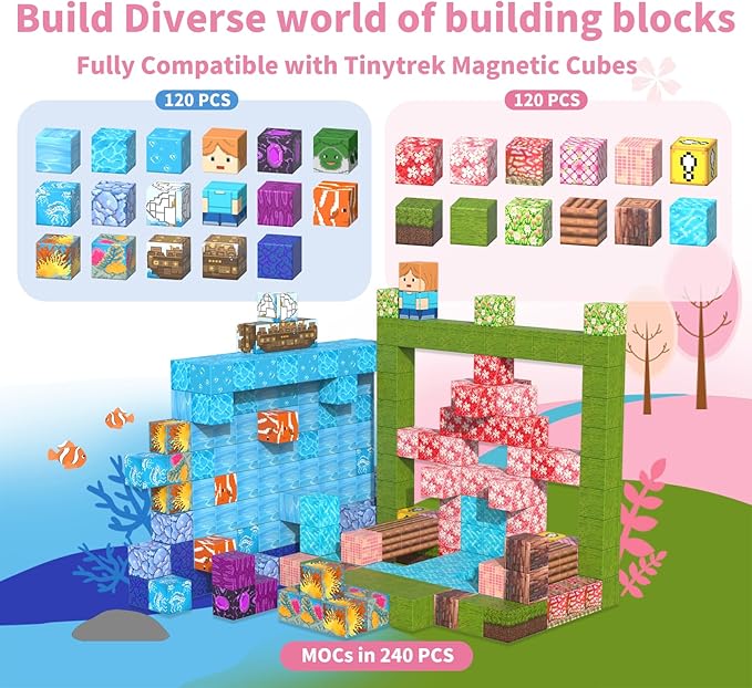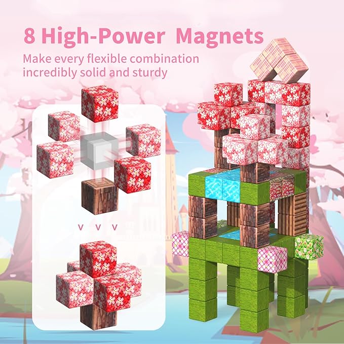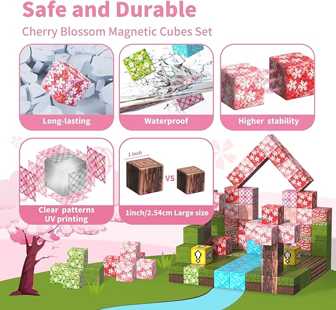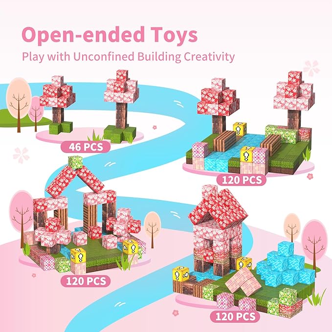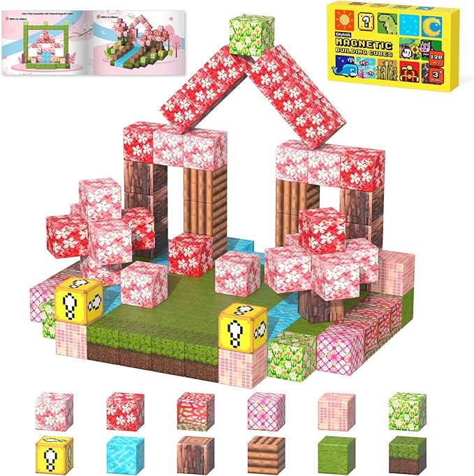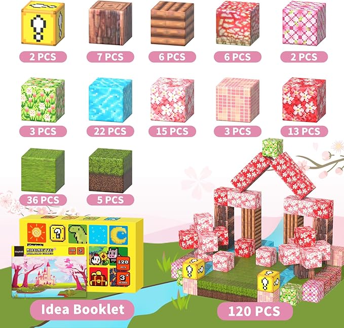 - MAGNETIC BLOCKS ADVENTURE: The Tinytrek magnetic building blocks - 120 Piece Cherry Blossom Set provides a diverse range of 12 natural element patterns, such as cherry blossoms, grass, land, wood, and rivers. This magnetic toy unlocks a world of imagination and creativity for children as they build and explore their adventure