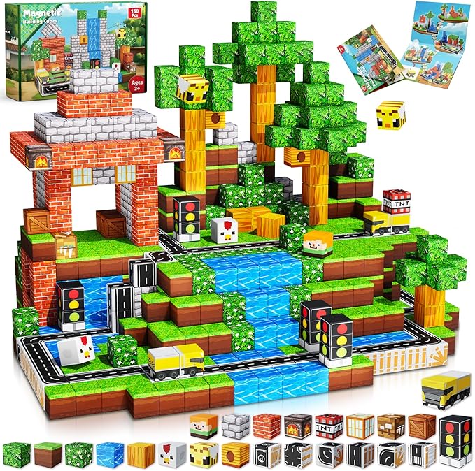 - 【Magnetic Blocks Adventure]: Let's embark on an adventure with magnetic building blocks! These magnetic blocks are equipped with , preventing them from collapsing during construction, unlike regular building toys.This attracts curious children and boosts their confidence.These magnetic building cubes can be freely assembled, allowing children to build anything they imagine, much like a sandbox game, fostering the growth of their creativity.