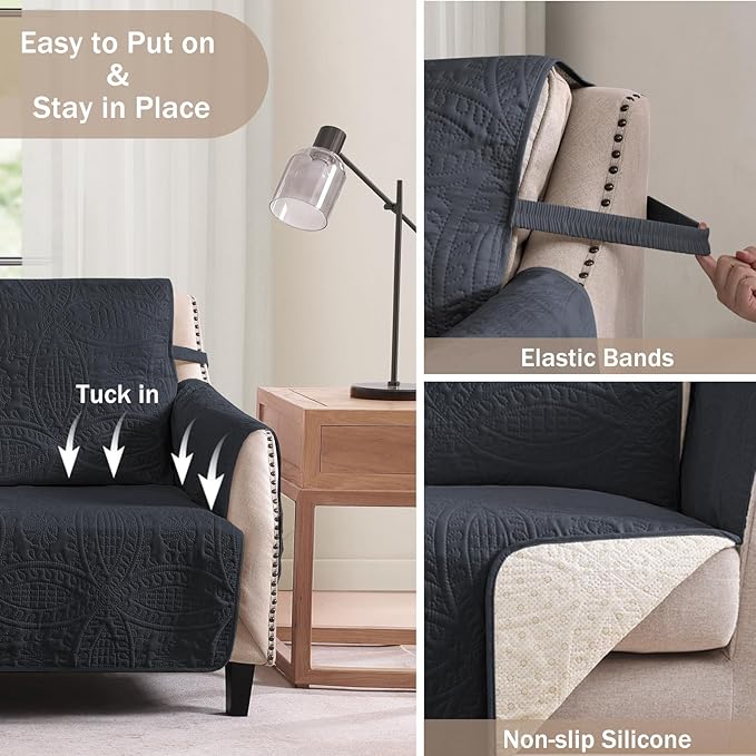 - Water Repellent and Anti-Slip Sofa Slipcovers: crafted from super soft and water-repellent microfiber fabric, which can not only safeguard your sofa with all-around protection but also allow liquids like coffee or juice to bead up and roll off without soaking into the sofa, keeping your couch dry and clean; our Pamhaven sofa cover is designed with two anti-slip elastic bands and non-slip silicone on the back side, ensuring a snug fit that stays in place and preventing slipping and sliding