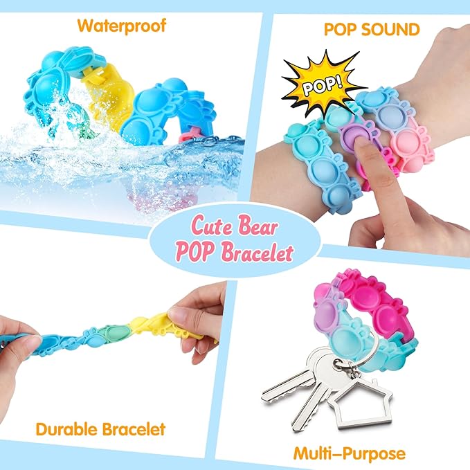 - Unique Pop Bracelet Design: Our pop bracelets are made of high-quality silicone, safe as a pop fidget toy for kids 3+ years. The length of the pop bracelet can be adjusted according to the actual situation of wrist, this is small in size and light in weight, making it easy for you to carry around and and washable, is suitable for kids to wear