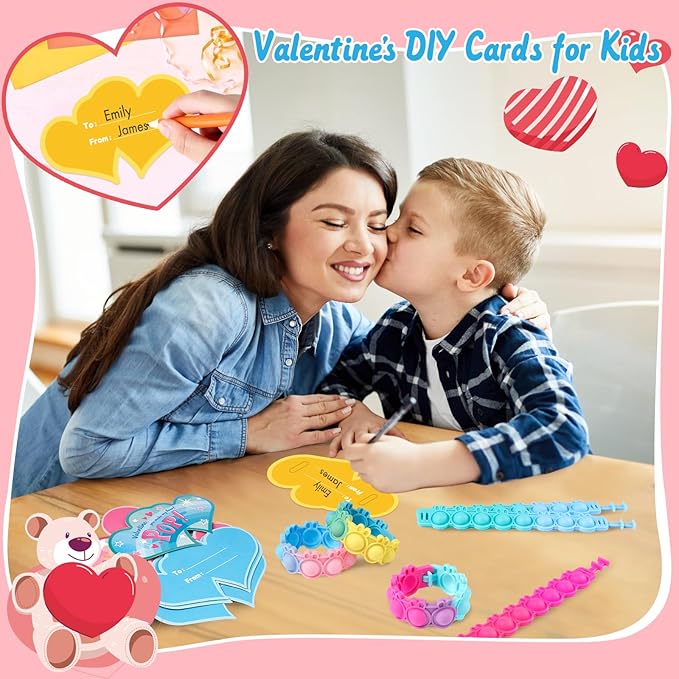 - Kids Valentine’s Day Gifts: Great for Valentines day gifts and birthday party favors for kids 3+. These are such a cute way for your kids to share gifts to their friends and classmates. These Valentine cards and bracelets are great as party favors, little idea gifts and gift bag fillers at Valentine's party, class events, gift exchange, school classroom prize activitie