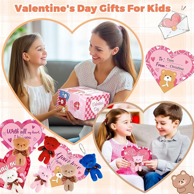 - Perfect Idea Gift for Children: The cute mini teddy bear and gift card is great Valentine party favors and nice gift for boys and girls. They are perfect Valentines cards set for kids classroom, Valentines exchange gift, school classroom prize and any occasions. And is a fun way to spread the love and joy or express gratitude to family, friends, classmates and teather, and boost their social skills