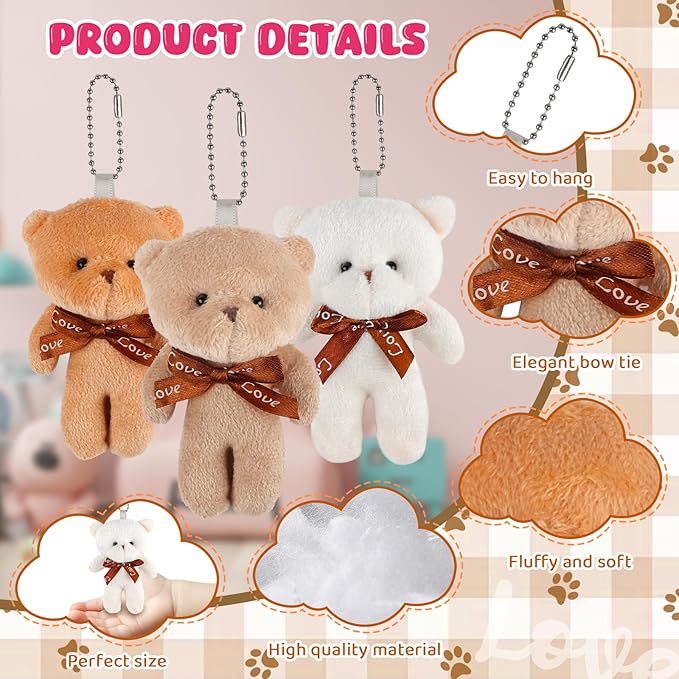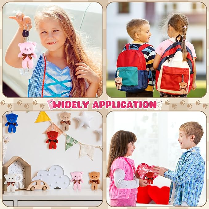 - Comfortable and Soft: Each mini plush bear has a bow on the neckline, stylish and cute in design, have designed mini bears in white, brown, pink, khaki, red, bule colors. It is not easily damaged, and very comfortable and soft, can accompany your kids for a long time. The Valentines lovely stuffed animal can bring more fun to your kids