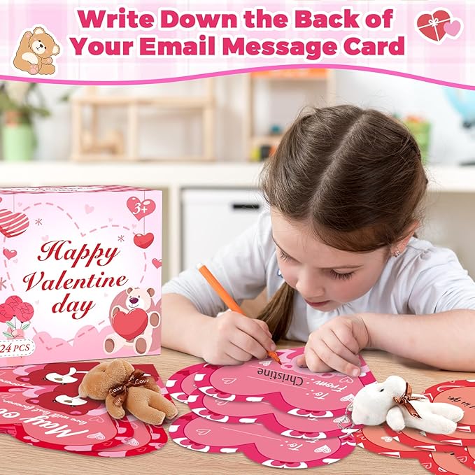 - Valentines Cards for Kids School: No need to buy extra kids Valentines day cards, the kids can write their names and the recipient's name on the back of the card, put the write-completed Valentines day card and bear together into the bag, then give the packed Valentines treat bags to the classmate and firend, the kidsvcan enjoy the process of packing and sending kids Valentines gifts set by themselves, experience the meaning of Valentine's gifts