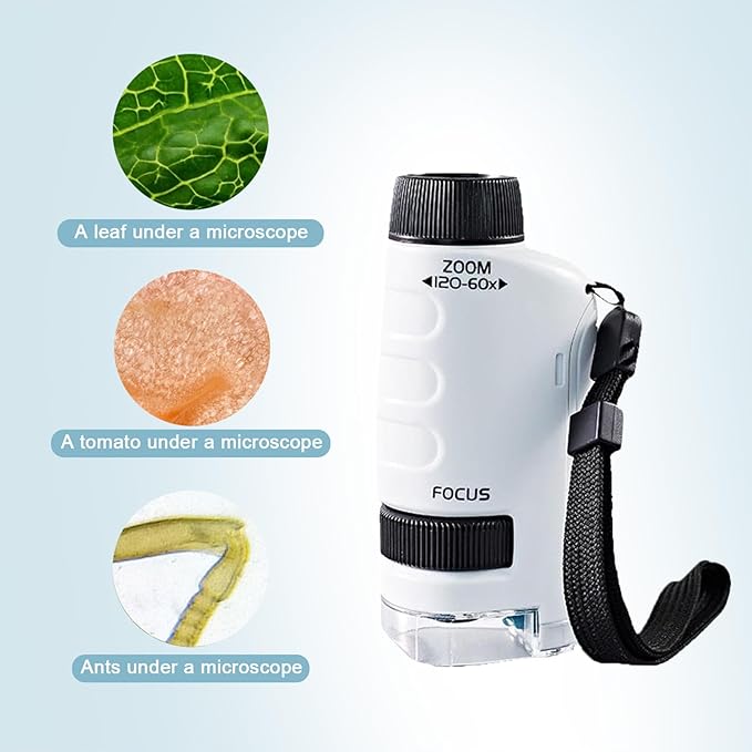 - Variable Magnification: With magnification options ranging from 60x to 120x, this mini microscope enables children to examine various specimens in detail. Suitable for primary and secondary school students to carry.