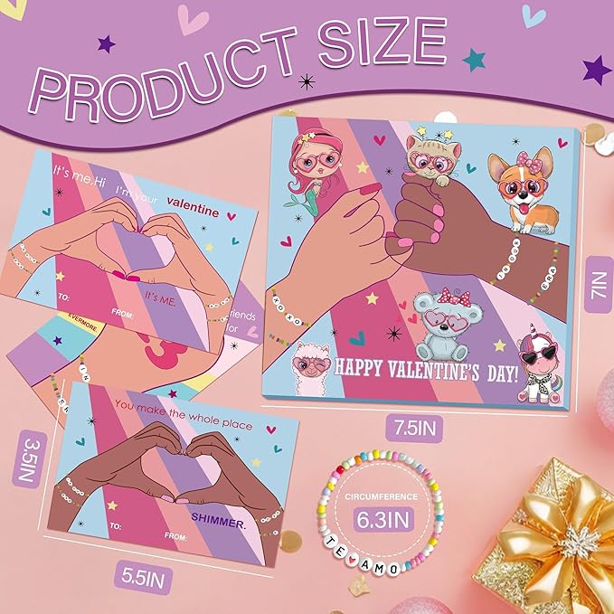 - Ideal Valentines Day Gifts for Girls - These charming valentines day cards for kids school make the perfect Valentines Day Gift for anyone who loves music and fashion. These friendship valentines cards and Valentines Bracelets are perfect for kids aged 3-12, making it a great choice for boys and girls in preschool, kindergarten, grades 1-5, and for Valentine's gift exchanges in schools, classrooms, girls' schools, boys' schools, and day care centers