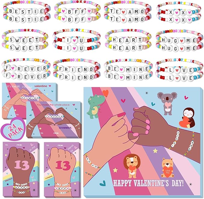 - Ideal Valentines Day Gifts for Girls - These charming valentines day cards for kids school make the perfect Valentines Day Gift for anyone who loves music and fashion. These friendship valentines cards and Valentines Bracelets are perfect for kids aged 3-12, making it a great choice for boys and girls in preschool, kindergarten, grades 1-5, and for Valentine's gift exchanges in schools, classrooms, girls' schools, boys' schools, and day care centers