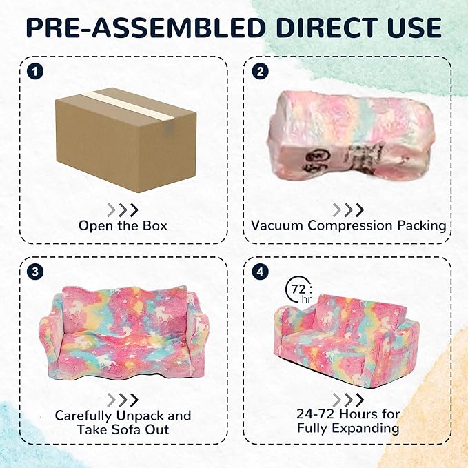 - Magical Glow-in-the-Dark: The unique glow-in-the-dark design adds an enchanting touch to your child’s room. Simply expose the sofa to bright light for a while, and watch the patterns illuminate at night! Whether it’s a unicorn or dinosaur design, the glowing effect sparks imagination and creates a cozy nighttime atmosphere