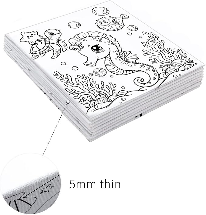 - Acrylic Paint Set :This pre drawn canvas painting kit provides great quality and fun at a great value. Including 4 pcs 7.8x7.8" Pre Drawn Canvas,8x Brushes,4xPalette,2x Easels,48x Paint boxes (Each canvas painting with 12 paints)The canvases are just the right size for kids’ attention spans, without being too overwhelming.