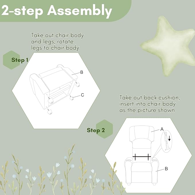 - Luxurious Recliner - 4 non-slip feet to keep the chair stand stably without tipping over. The cup holder design in the armrest offers easy access for your lovely children to drink and drinks from spilling.