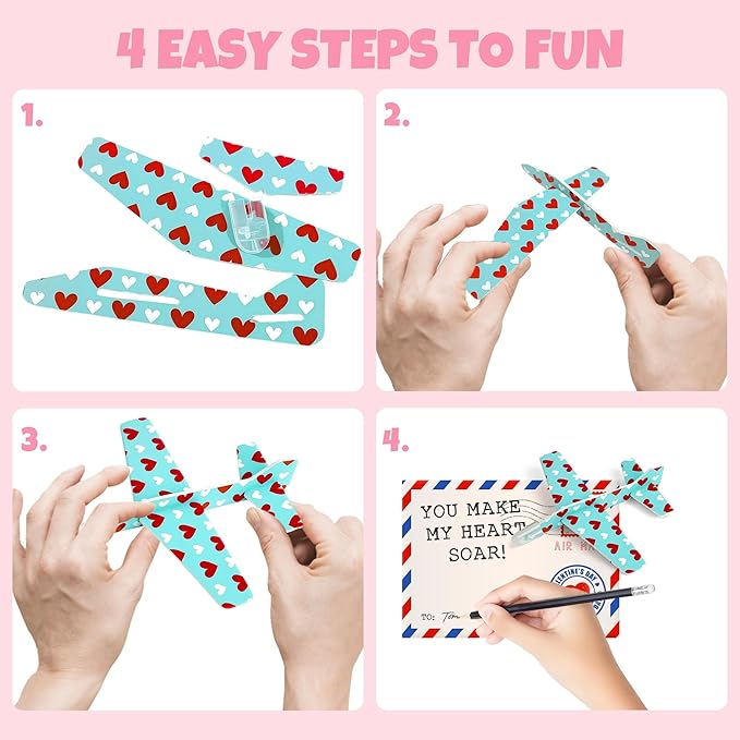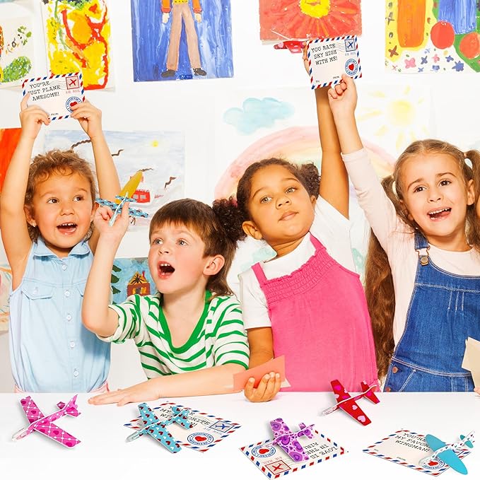 - Easy to Assemble Valentines Day Crafts for Kids- Assembling the foam airplanes is quick and easy—no glue or complicated folding is required! The airplanes Valentines Day Gifts for school come with simple instructions for easy assembly. Once put together, kids can enjoy watching their planes soar. These non candy valentines for class are fun, hands-on activity that encourages creativity, helps develop motor skills, and allows children to play outside, away from electronic screens