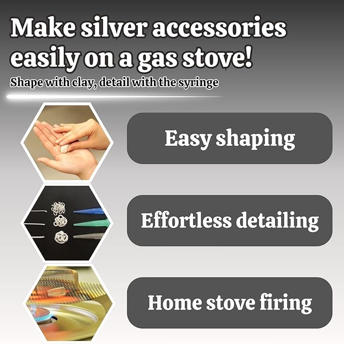 - A special package that combines convenient tools to expand the scope of jewelry making. By utilizing the unique characteristics of each type, anyone can bring their envisioned designs to life.After firing, your work will transform into a beautiful piece of 99.9% pure silver.