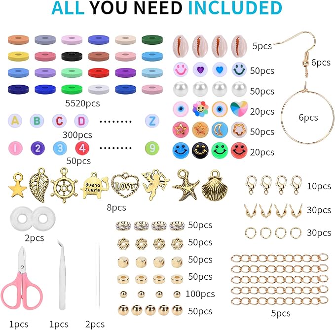 - COMPLETE KIT: Contains 6500 polymer clay beads in 24 vibrant colors, perfect for creating stylish friendship bracelets and jewelry