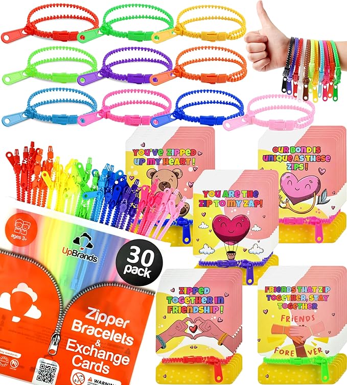 - Massive Bulk Supply: Case pack includes 60 boxes, each containing 30 unicolor fidget zipper bracelets and Valentine cards for large-scale needs.