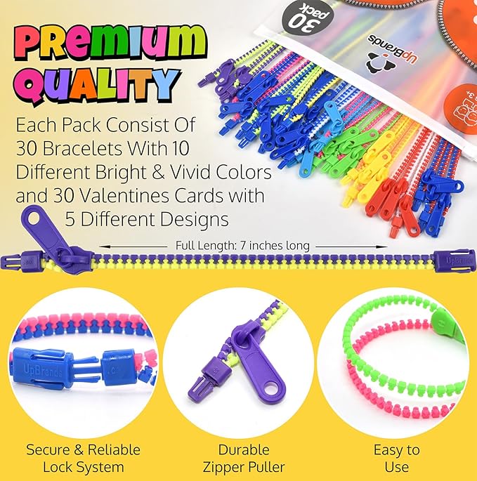 - Bulk Pack for Large Groups: Includes 60 boxes with 30 bi-color zipper bracelets and Valentine cards each, suitable for events of any size.