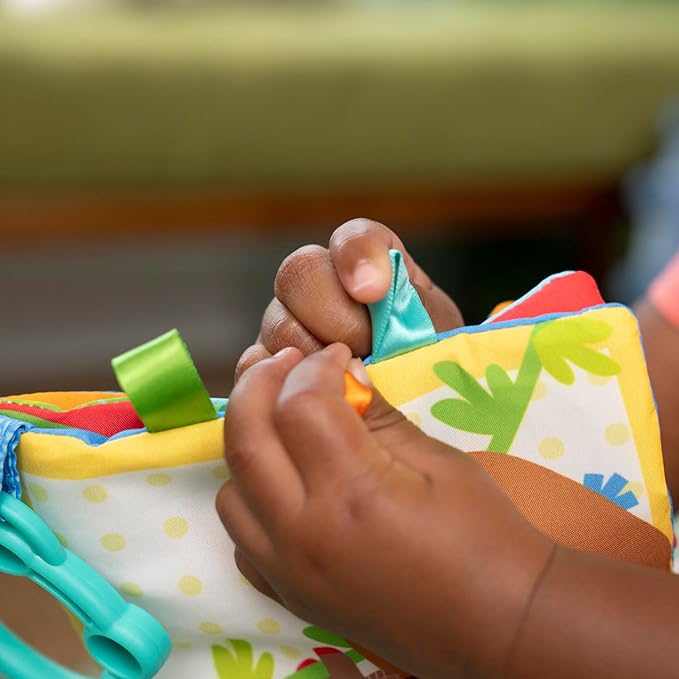 Bright Starts Safari Buddies Soft Book, Crinkle Plush Pages with Lion, Monkey, Elephant & More, Baby's First Book, Unisex, Ages 0+
